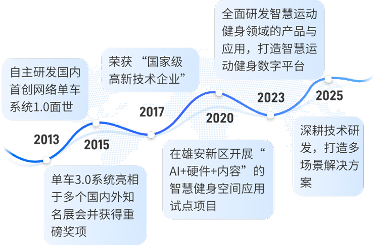 踏行天际专注于研发智慧运动健身领域的产品与应用,以科学健身技术为核心,以智能化健身设备为载体,以满足个性化、高效健身需求为目标,以发展全民健康为方向,构建“AI+硬件+内容"的科学健身生态体系,为用户提供专业化服务。公司产品主要有网络单车系统、智能健身镜等,多次参加行业展会及行业赛事,获得权威机构颁发的多项创新设计奖项,同时专注开拓健身市场,为广大用户提供优质、专业的服务,赢得了众多企业的信赖与好评,树立了良好的公司品牌形象。北京踏行天际科技发展有限公司将携手社会各界开拓创新,共同推进科技发展,谱写健康与娱乐并存的美好篇章!